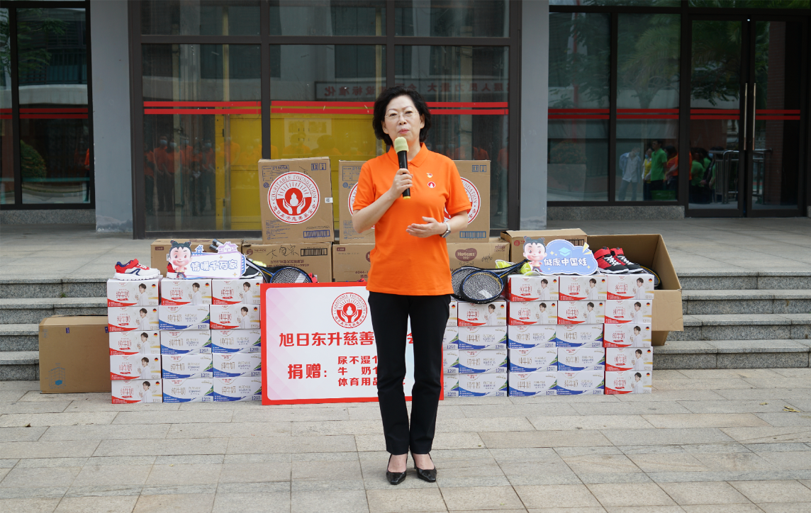 紧接着,海口市社会福利院院长唐凤英致辞。她首先感谢PG药业集团、旭日东升慈善基金会7年来,对海口市社会福利院的持续关注和无私帮助。她特别提到,2022年由PG药业集团捐资建设的“爱·护”项目医护隔离观察区,帮助福利院的孩子们渡过了疫情防控的难关。今年,熟悉的PG人又来到了福利院陪伴孩子们,给予了这里的小朋友们爱的力量。