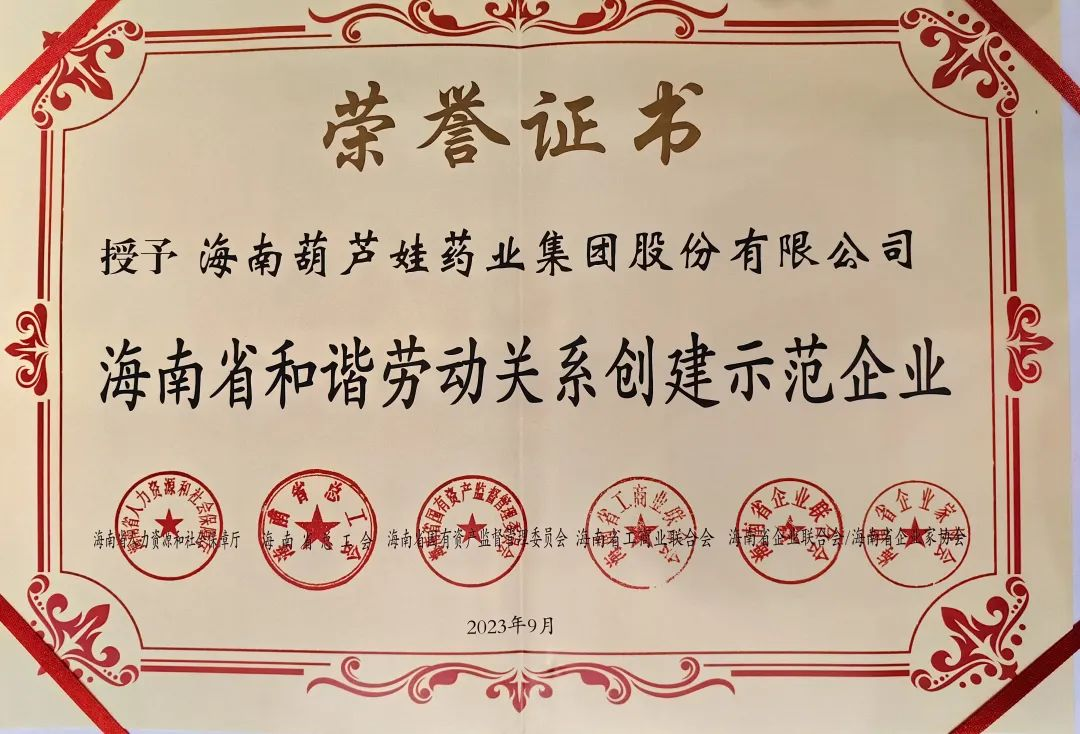 PG药业集团获评“海南省和谐劳动关系创建示范企业”